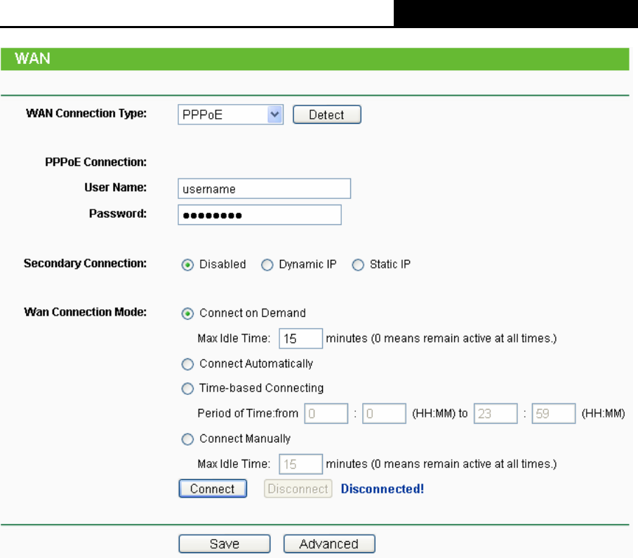 ¾ Connect on Demand - In this mode, the Internet connection can be terminated