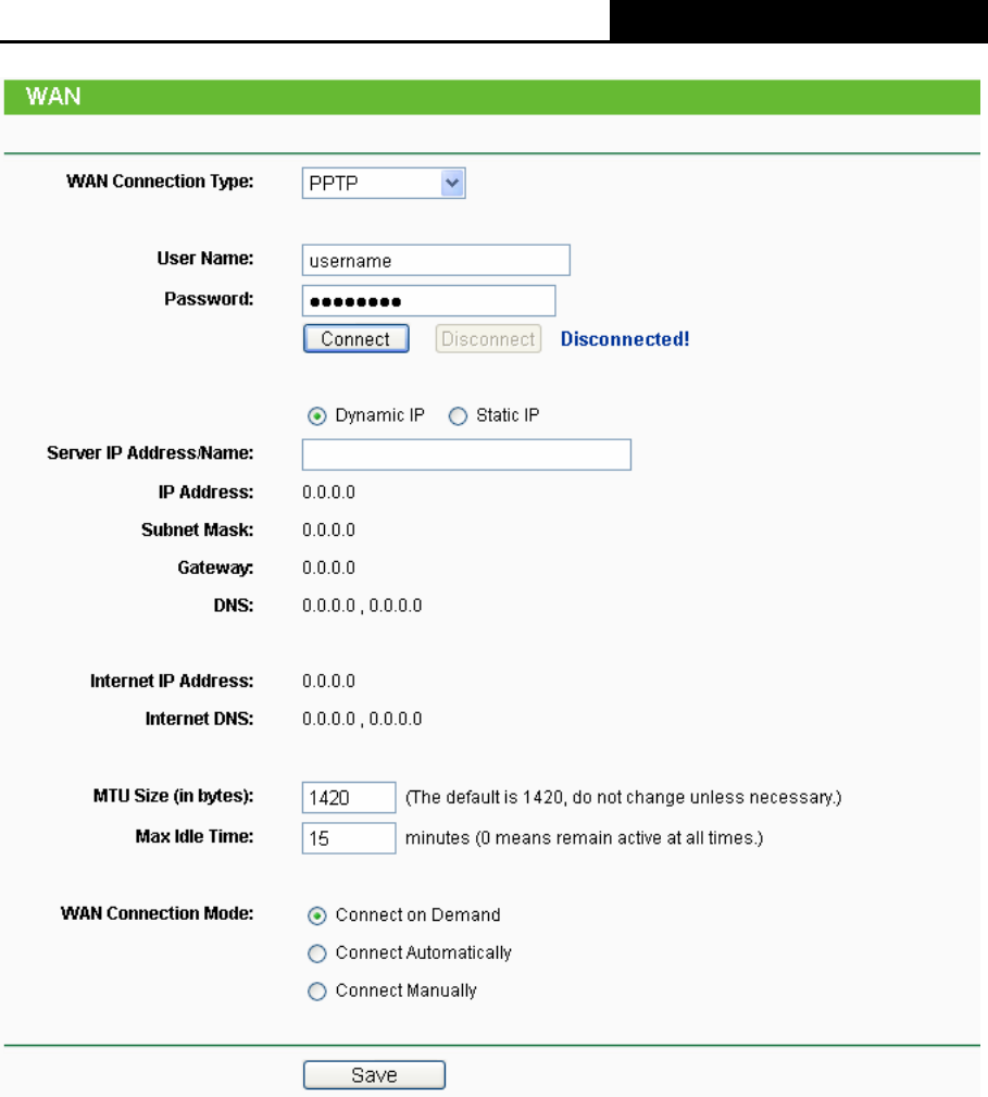 ¾ Connect on Demand - You can configure the Router to disconnect from your Internet