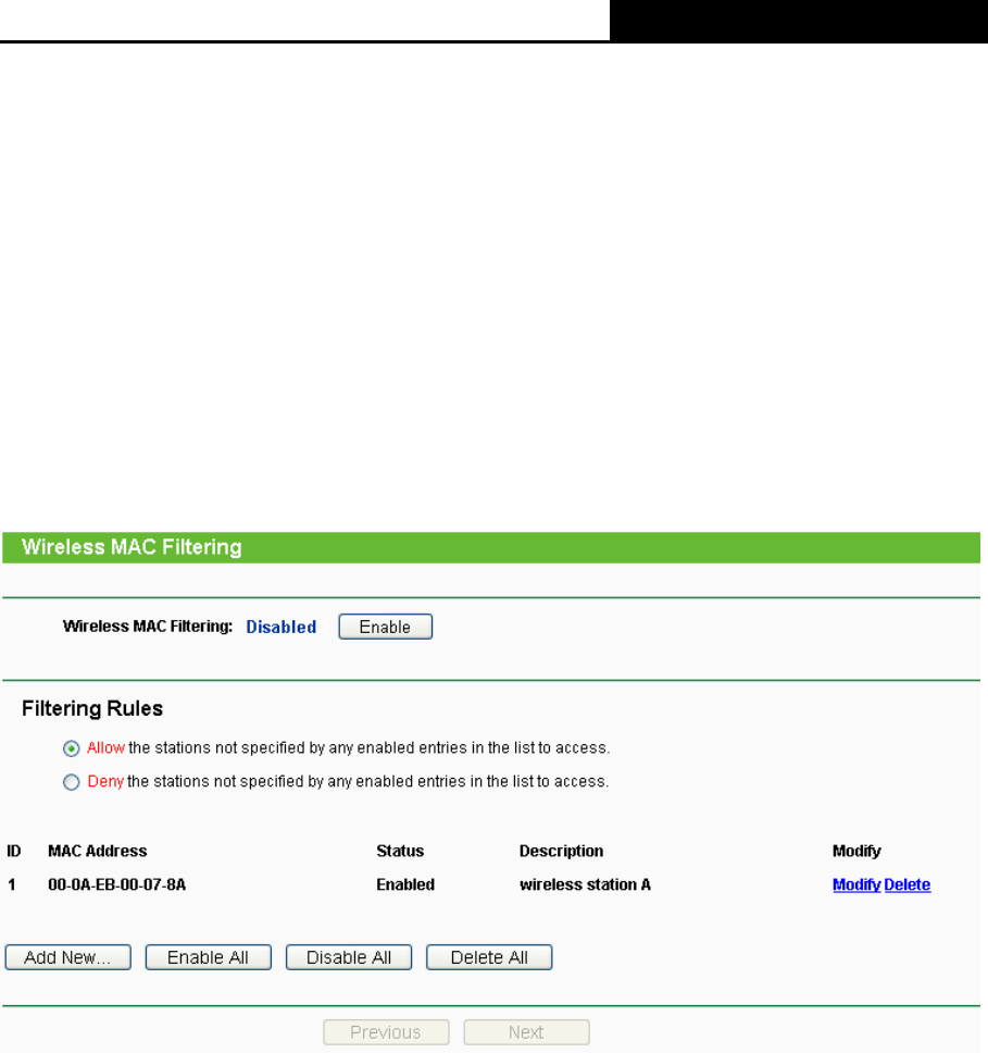 Modify Wireless MAC Address Filtering entry" page will appear, shown in Figure 4-28: