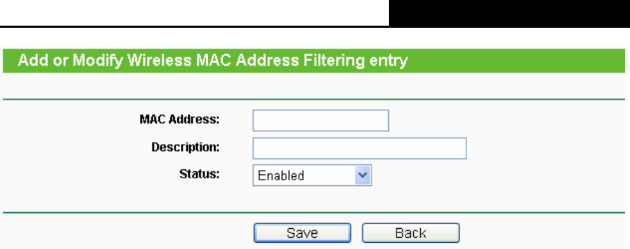 Figure 4-28 Add or Modify Wireless MAC Address Filtering entry