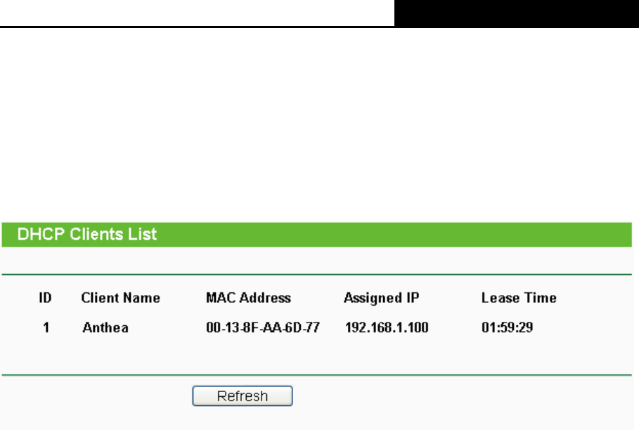 Choose menu “DHCP→DHCP Clients List”, you can view the information about the clients