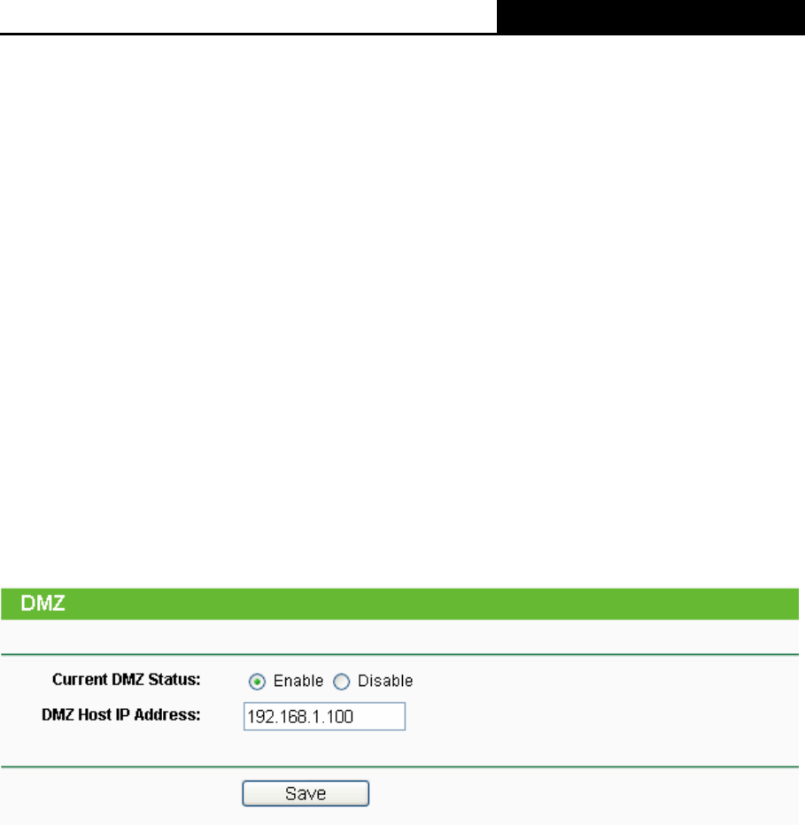 Choose menu “Forwarding→DMZ”, you can view and configure DMZ host in the screen