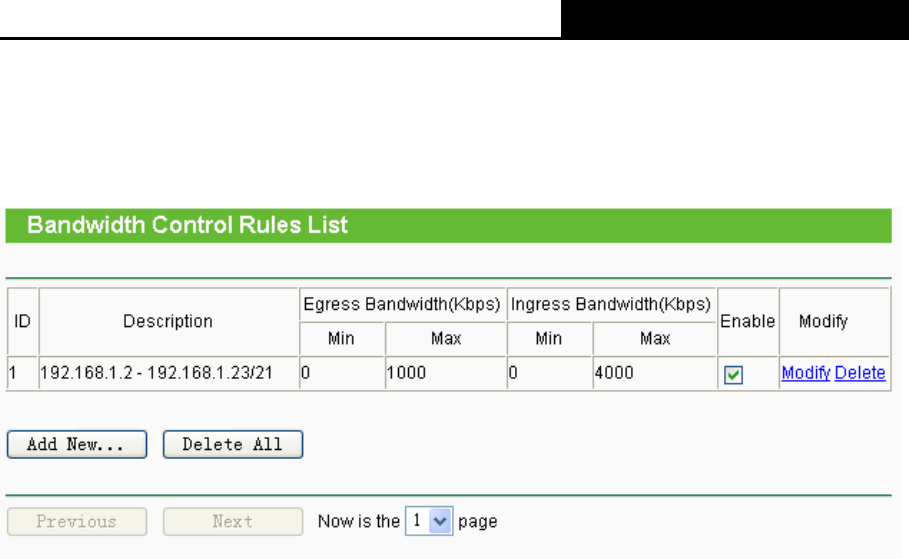 Choose menu “Bandwidth Control → Rules List”, you can view and configure the Bandwidth