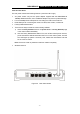 MR0-WR641G 108M Wireless Router User Guide 2.3.2 The Rear Panel The rear panel contains the following features. (View from left to right) ¾ ¾ ¾ ¾ ¾ AC power socket: only use the power adapter supplied with the MR0-WR641G 108Mbps Wireless Router, use of a different adapter may result in product damage.