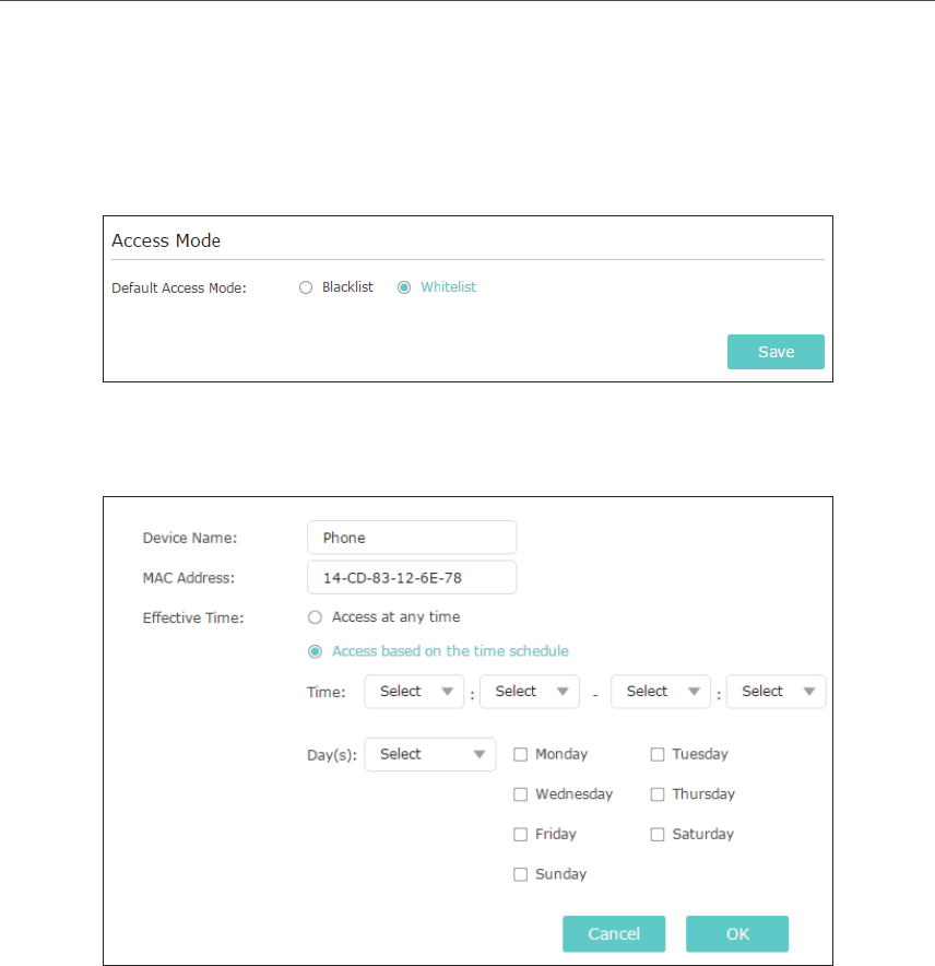 2. Click Add in the Devices in Whitelist table. Enter the Device Name and MAC Address.