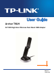Archer T9UH AC1900 High Gain Wireless Dual Band USB Adapter User Guide Chapter 1 Product Overview 1.1 Introduction The TP-LINK Archer T9UH AC1900 High Gain Wireless Dual Band USB Adapter connects your notebook or desktop computer over Wi-Fi to an 11ac or other network for applications such as lag-free video streaming, online gaming, and secure Internet surfing. 1.2 Features Supports 802.11ac standard Seamlessly compatible with 802.11a/b/g/n/ac products USB 3.