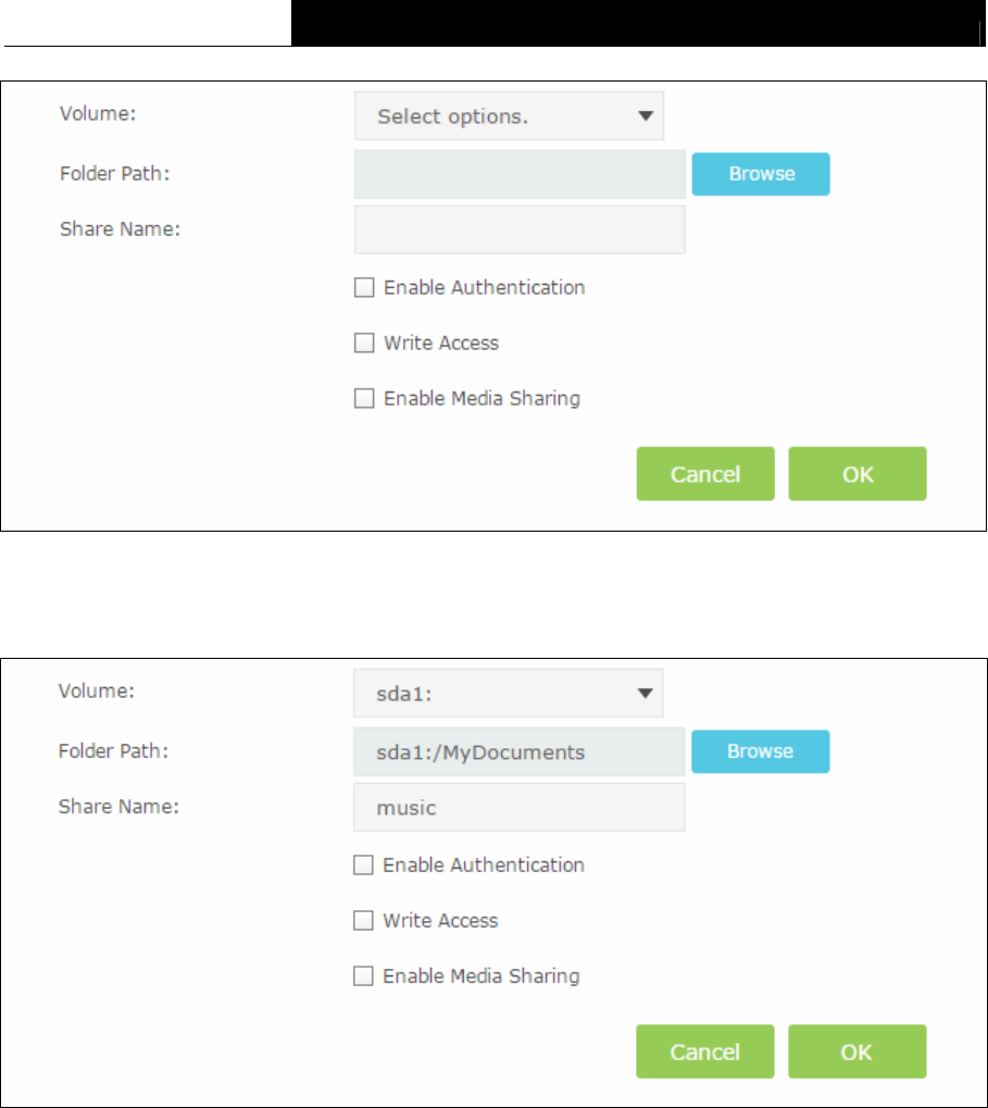 button to select the folder path. You can create a share name, e.g. music.