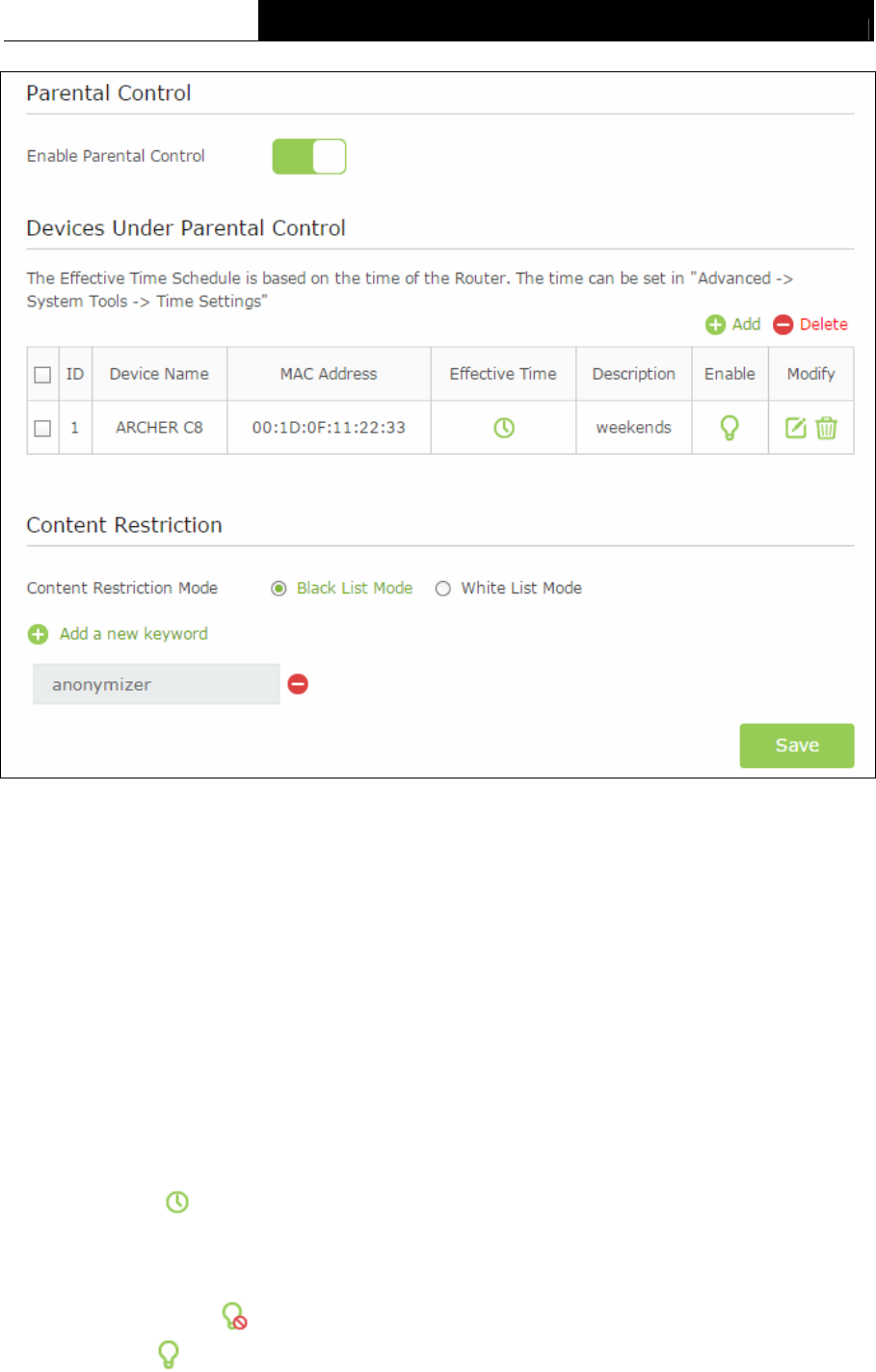 Enable Parental Control - The switch for the parental control. If you turn on the switch, the
