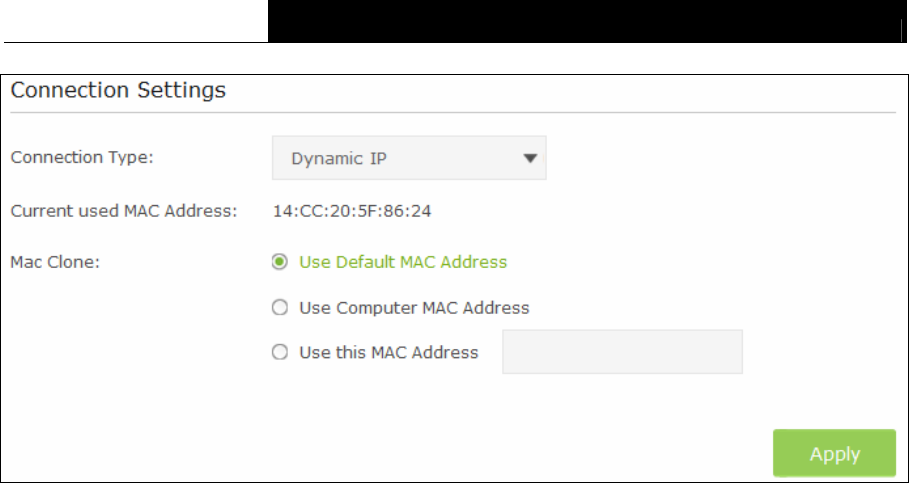 Current used MAC Address - This field displays the current MAC address of the Internet