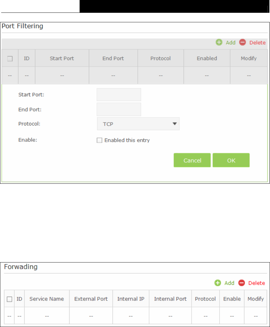 Choose menu “Advanced NAT Forwarding Port Forwarding”, and then you will see the
