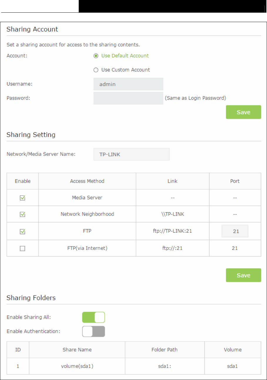 Account – You can select Use Default Account or Use Custom Account to log in sharing