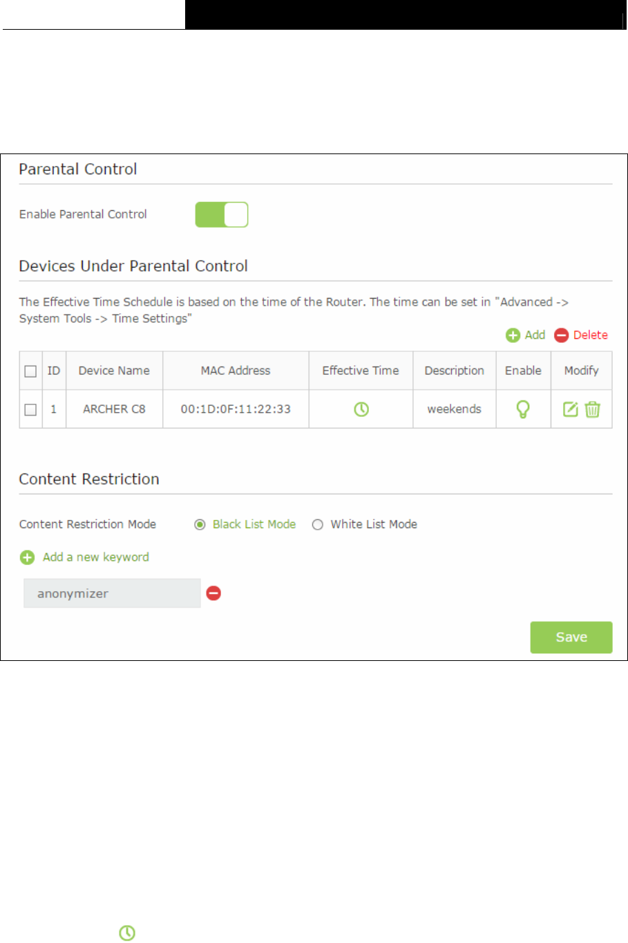 Enable Parental Control - The switch for the parental control. If you turn on the switch, the