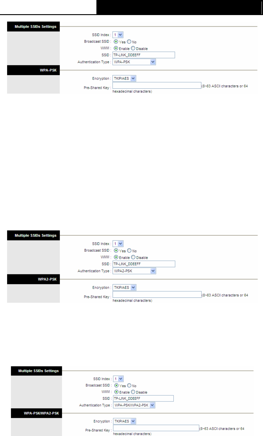 drop-down list. The menu will change to offer the appropriate settings. WPA-PSK/WPA2-PSK