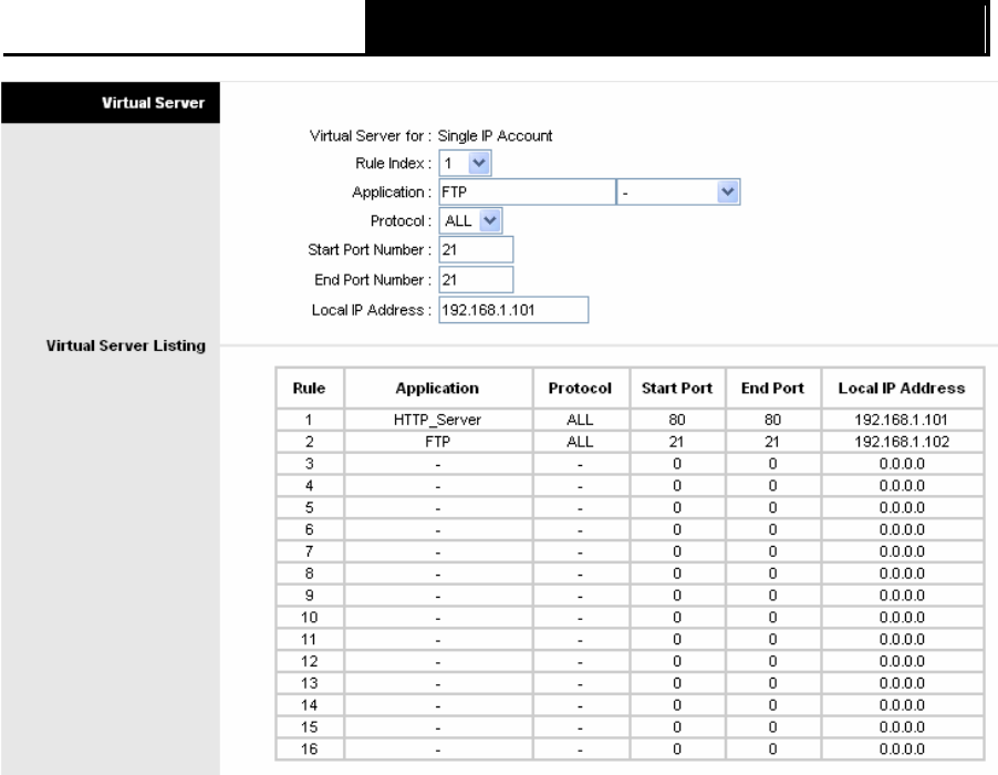 ¾ Application: The Virtual servers can be used for setting up public services on your LAN.