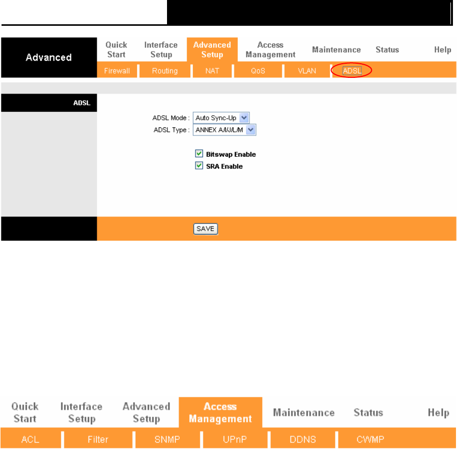 ¾ ADSL Mode: Select the ADSL operation mode which your ADSL connection uses.