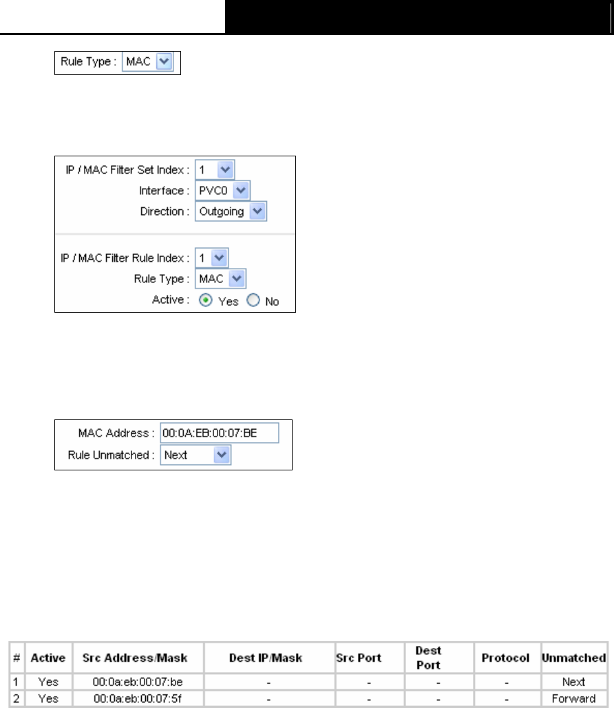 Select the IP / MAC Filter Set Index and IP/MAC Filter Rule Index to locate the specific rule, and