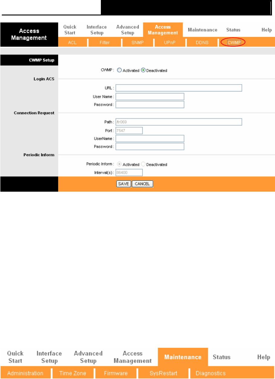 ¾ CWMP: Select activate the CWMP function.