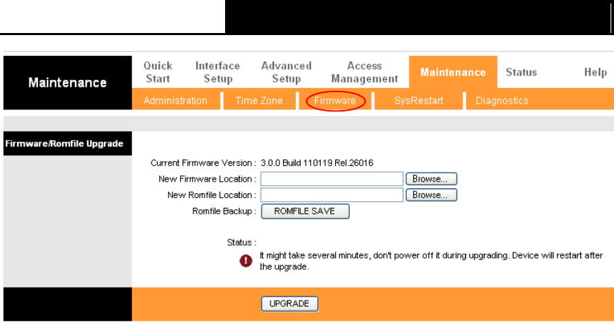 3) Do not turn off the Router or press the Reset button while the firmware is being upgraded.