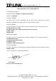 TP-LINK TECHNOLOGIES CO., LTD DECLARATION OF CONFORMITY For the following equipment: Product Description: 54M Wireless ADSL2+ Modem Router Model No.: TD-W8901G Trademark: TP-LINK We declare under our own responsibility that the above products satisfy all the technical regulations applicable to the product within the scope of Council Directives: Directives 1999/5/EC The above product is in conformity with the following standards or other normative documents: ETSI EN 300 328 V1.7.
