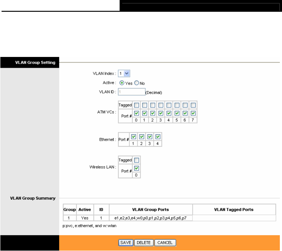 ¾ VLAN Index: Select the VLAN index for this VC. You can specify 8 groups in maximum.