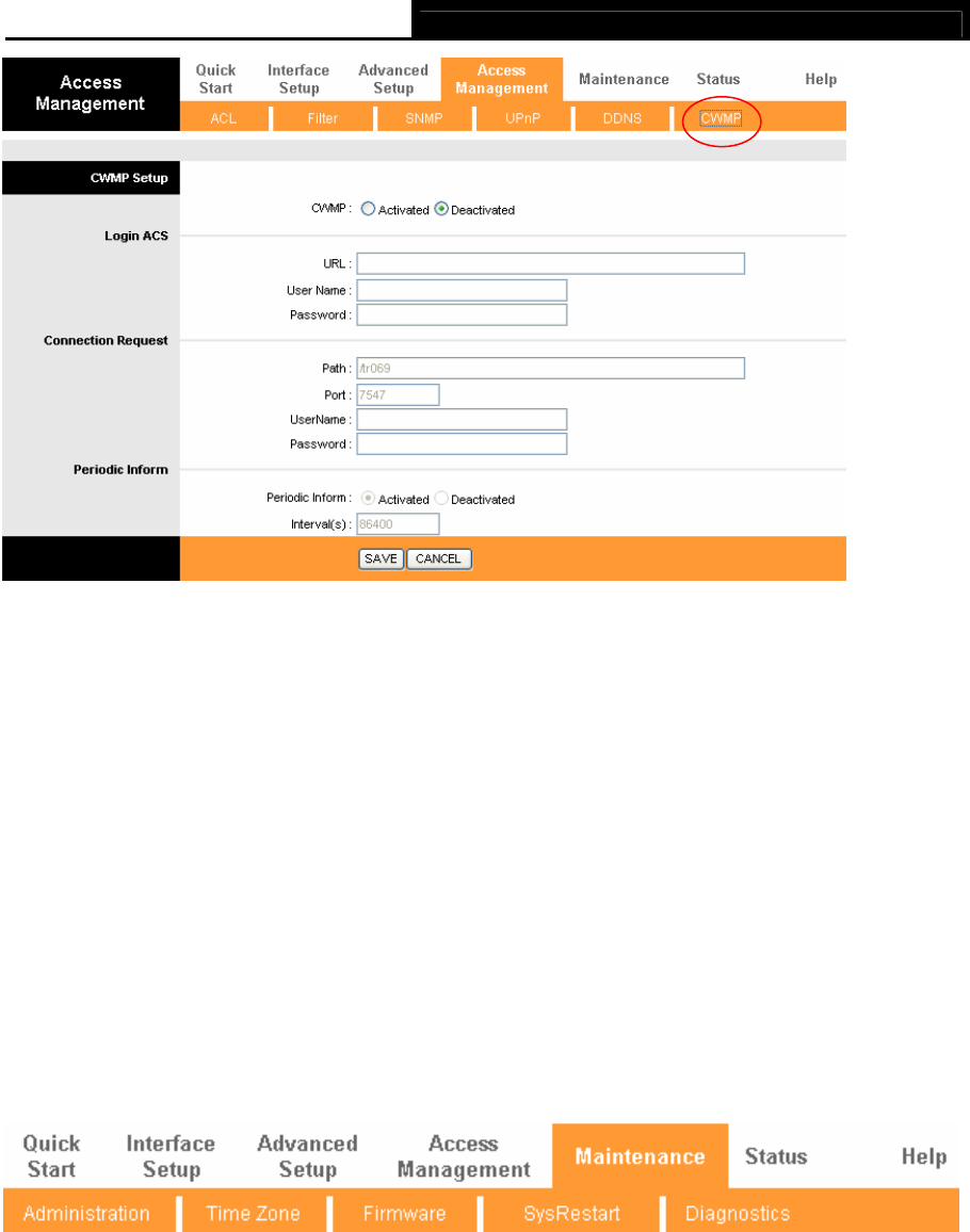 ¾ CWMP: Select activate the CWMP function.