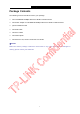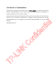 COPYRIGHT & TRADEMARKS Specifications are subject to change without notice. is a registered trademark of TP-LINK TECHNOLOGIES CO., LTD. Other brands and product names are trademarks or registered trademarks of their respective holders. No part of the specifications may be reproduced in any form or by any means or used to make any derivative such as translation, transformation, or adaptation without permission from TP-LINK TECHNOLOGIES CO., LTD. Copyright © 2015 TP-LINK TECHNOLOGIES CO., LTD.