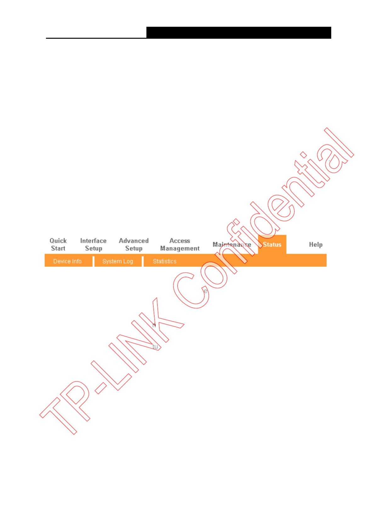 Choose “Status”, you can see the next submenus: Device Info, System Log and Statistics.