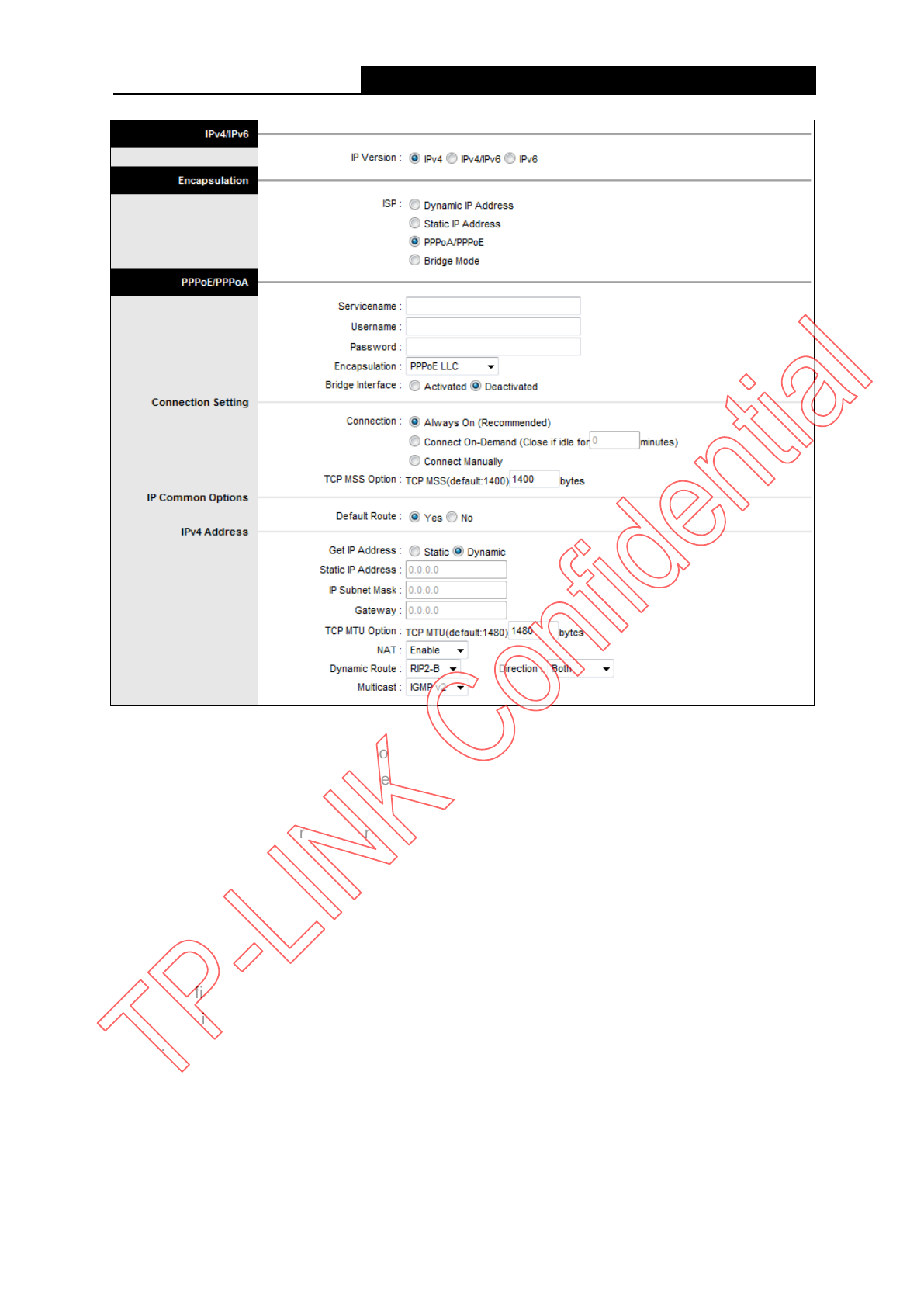 Encapsulation: For both PPPoA/PPPoE connection, you need to specify the type of