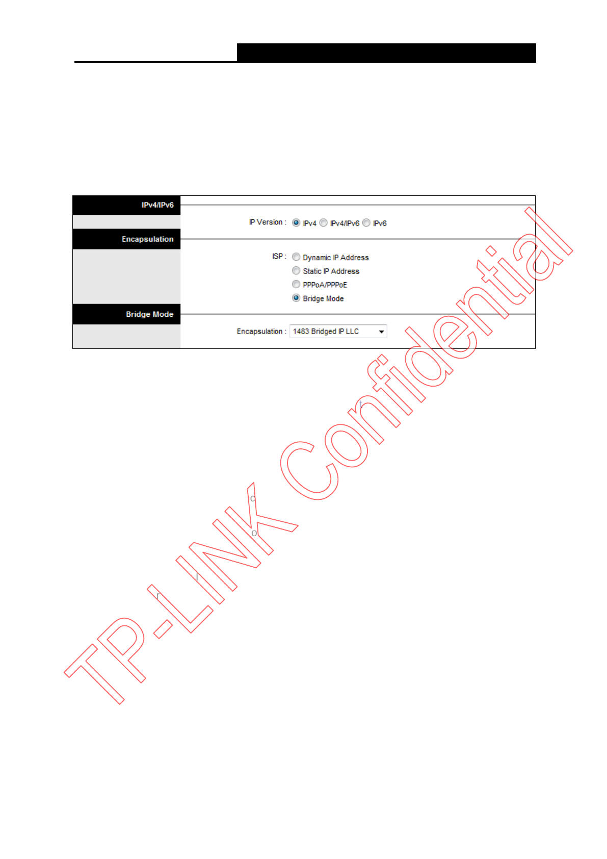 If you select this type of connection, the modem router can be configured to act as a bridging