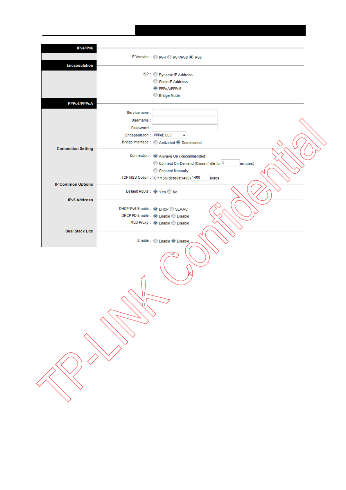 Connection: For PPPoA/PPPoE connection, you can select Always on or Connect