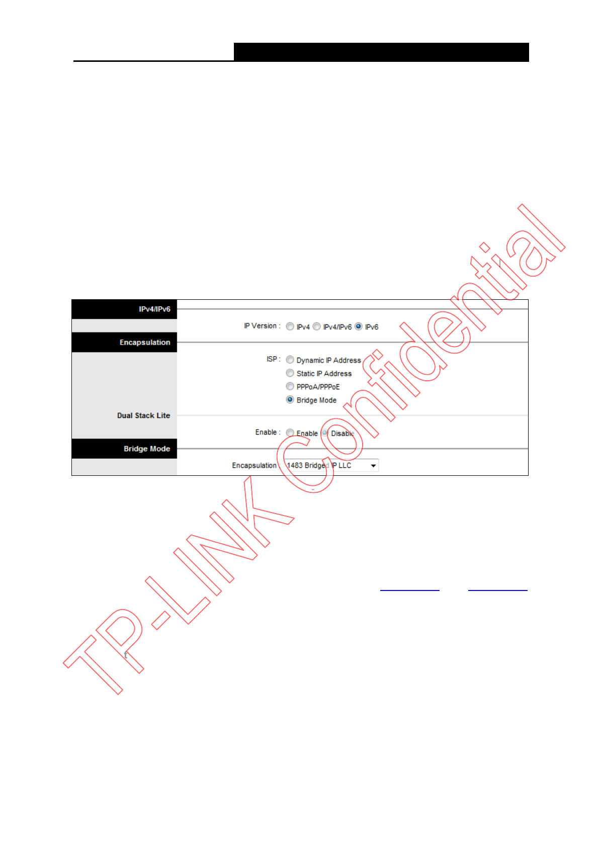 If you select this type of connection, the modem router can be configured to act as a bridging