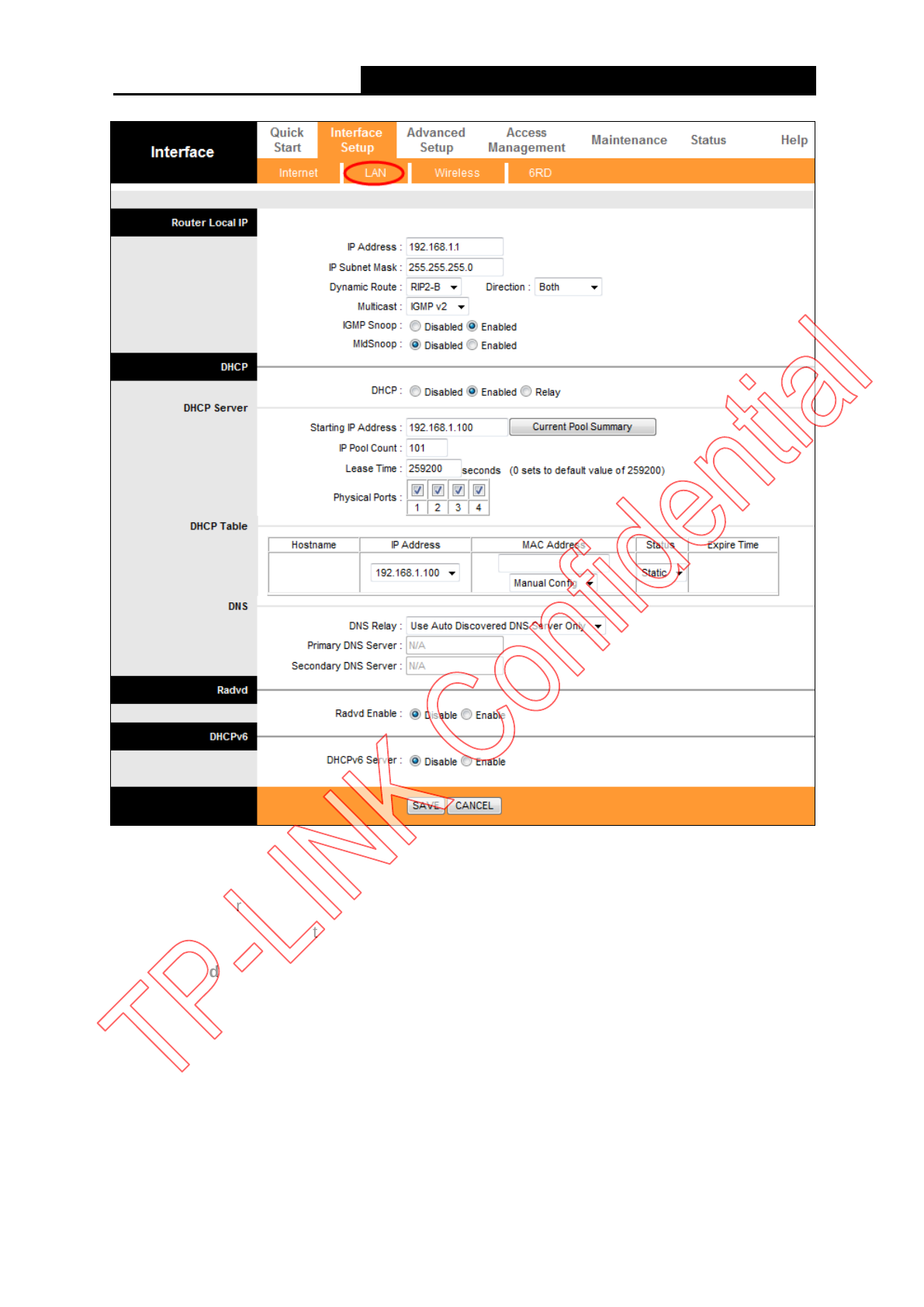 may be referred to as Private settings. You may change the LAN IP address if needed. The