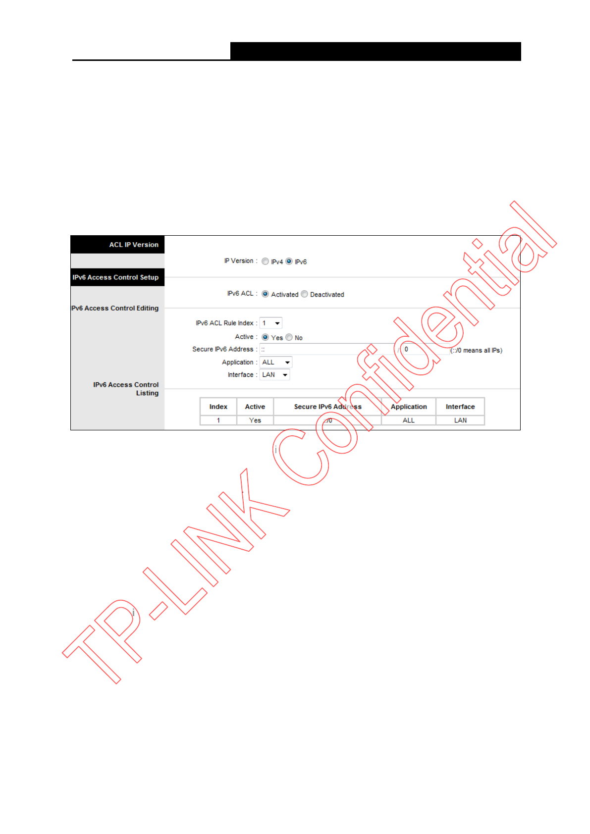 Secure IPv6 Address: Select the IPv6 addresses which are permitted to access to the