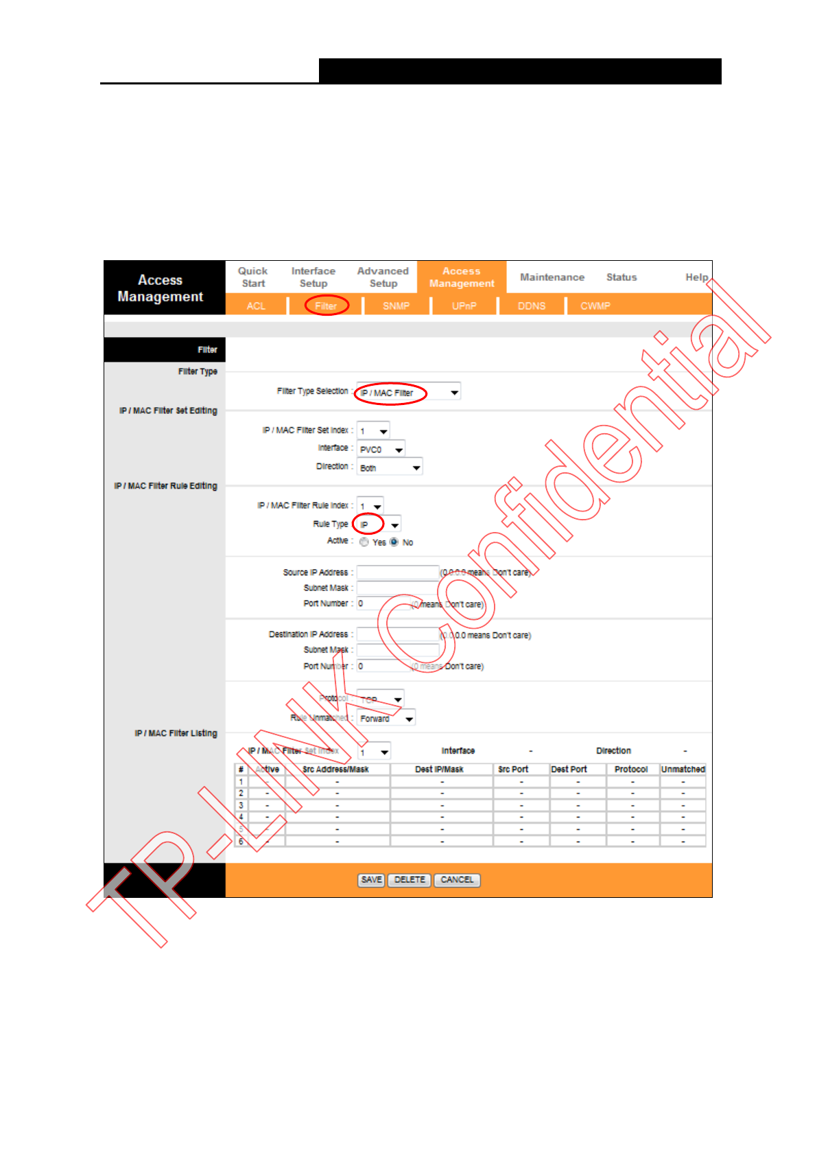 Select IP/MAC Filter as the Filter type, and select IP as the Rule type (shown in Figure 4-46), then