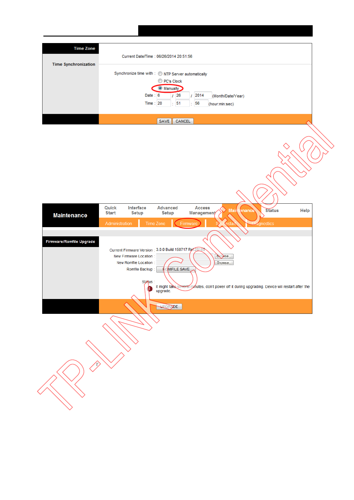 Choose “Maintenance→Firmware”, you can upgrade the firmware of the modem router in the