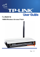 TL-WA601G 1.4 108M Wireless Access Point User Guide Conventions The AP or TL-WA601G, or device mentioned in this User guide stands for TL-WA601G 108M Wireless Access Point without any explanations. Parameters provided in the pictures are just references for setting up the product, which may differ from the actual situation. You can set the parameters according to your demand.