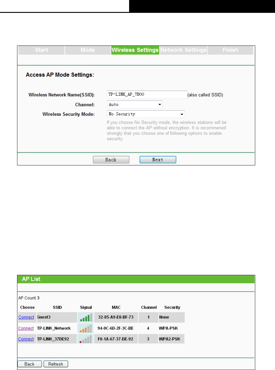 A. When you choose Access Point mode, the Wireless Settings page will be shown in Figure