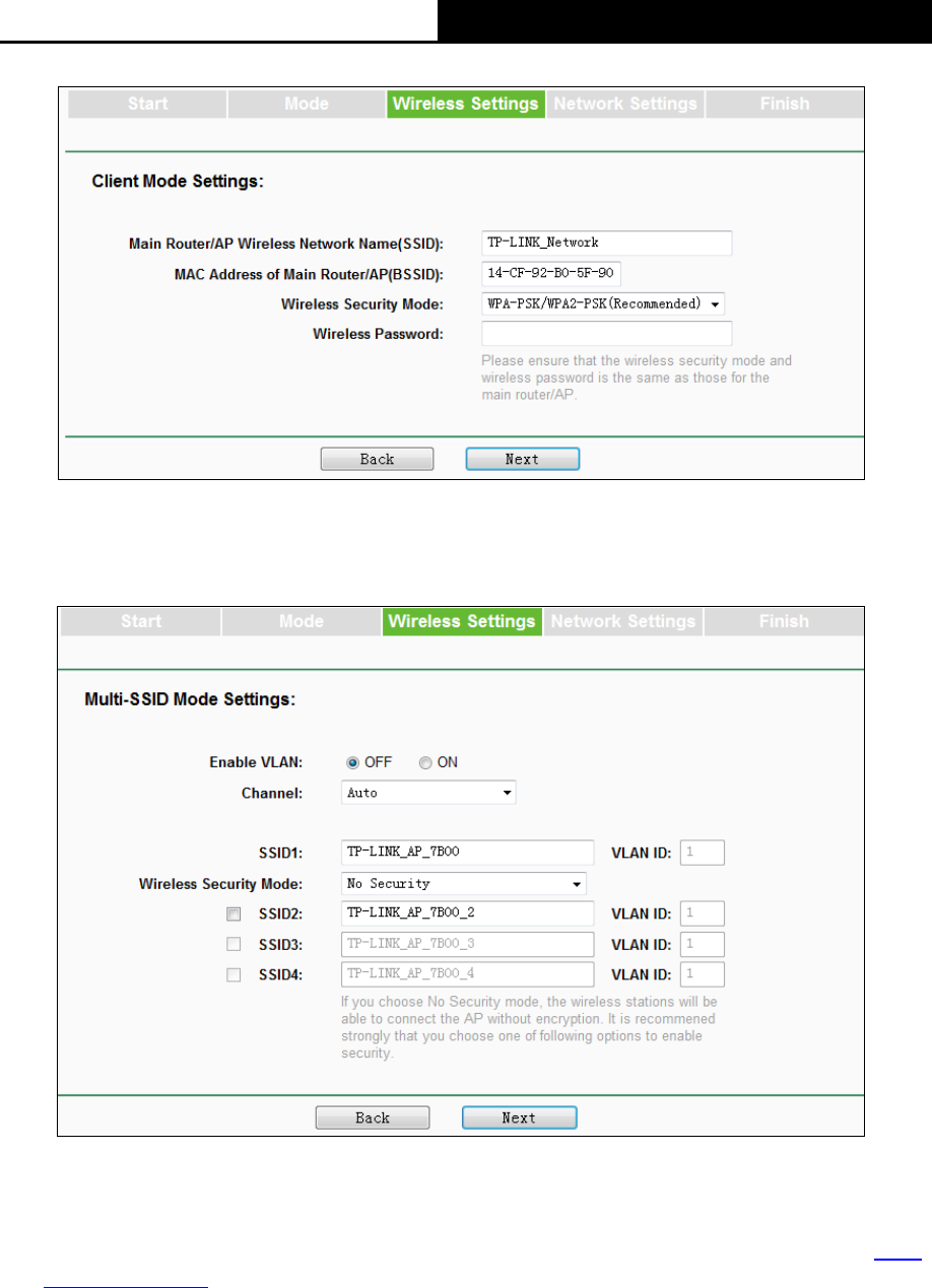 E. When you choose Multi-SSID mode, the Wireless Settings page will be shown in Figure