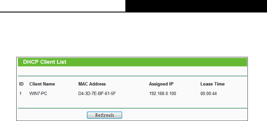 Selecting DHCP > DHCP Client List will enable you to view the Client Name, MAC Address,