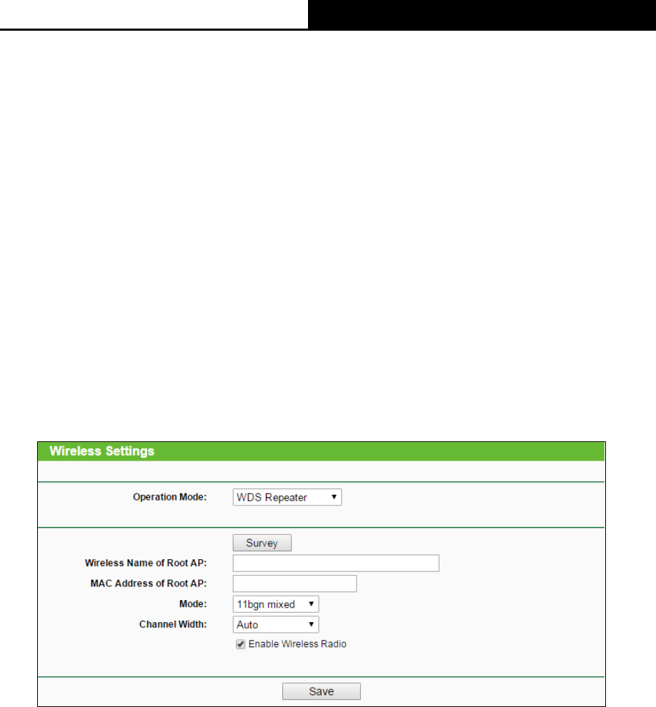 associated root AP. AP function is enabled meanwhile. The wireless repeater relays signal
