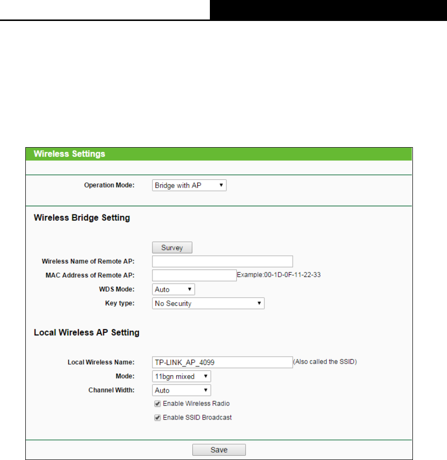 Figure 4-17 Wireless Settings in Bridge with AP mode