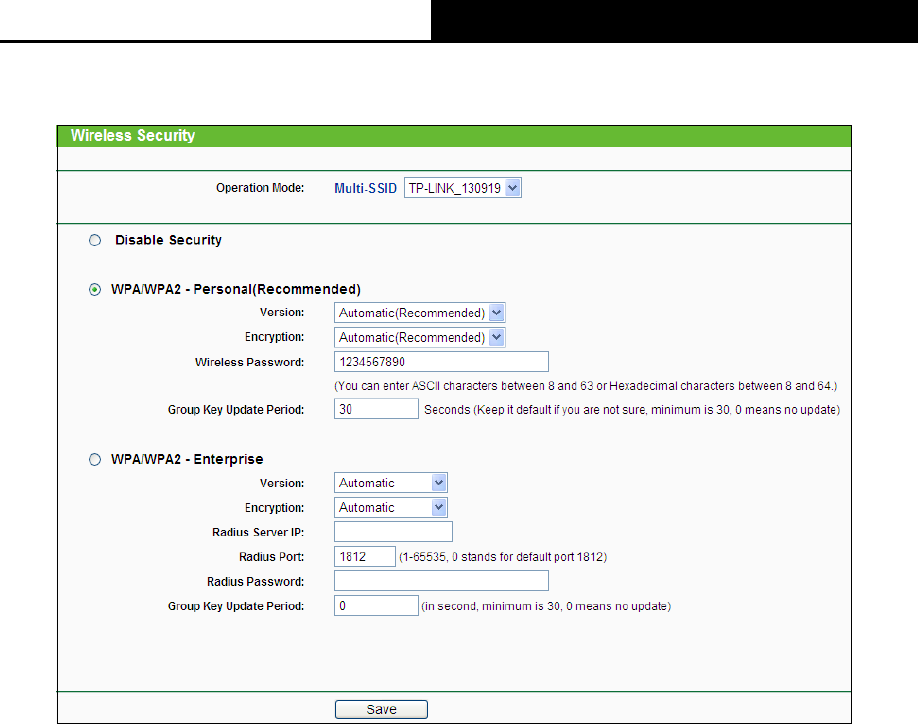 Disable Security - Check this box radio button to disable wireless security. If disabled, the