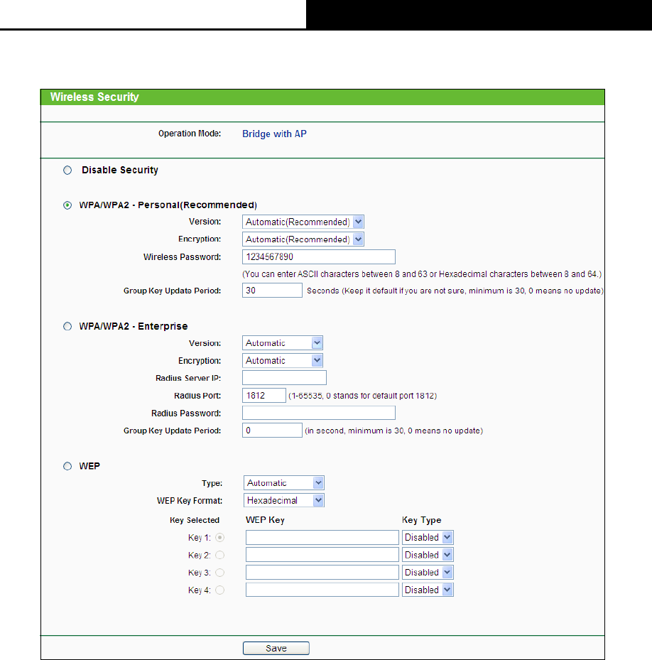 Disable Security - Check this box radio button to disable wireless security. If disabled, the