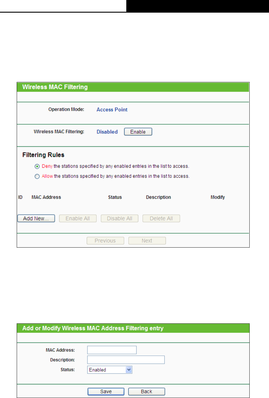 Wireless MAC Address Filtering entry" page will appear, shown in Figure 4-25