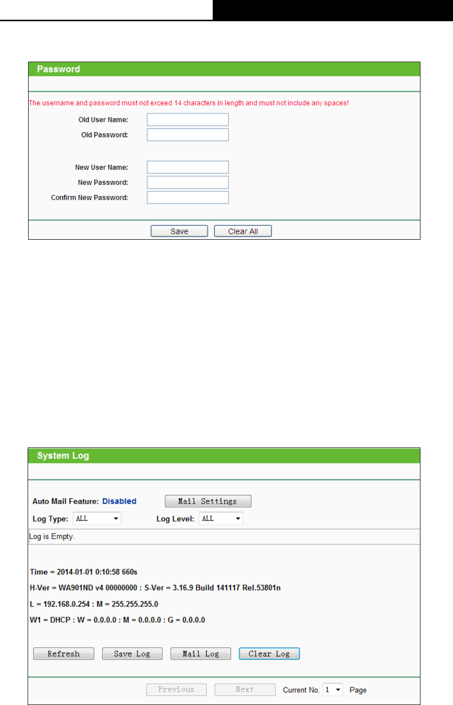 Selecting System Tools > System Log allows you to query the Logs of the device on the screen