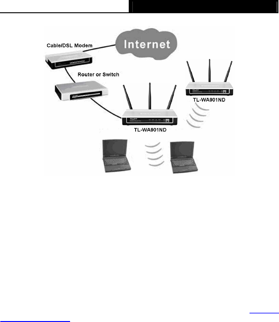 Figure 2-1 The Example of Infrastructure Network Incorporating the TL-WA901ND