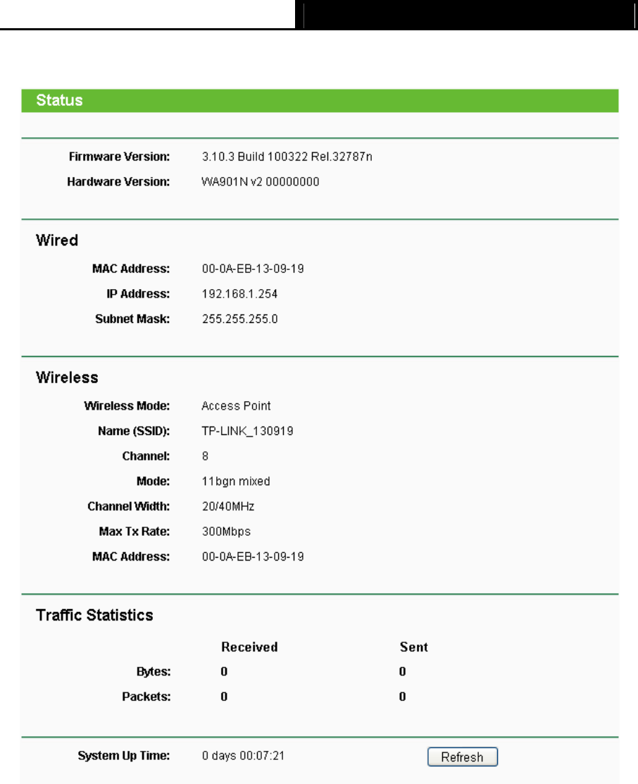 ¾ System Up Time - This filed displays the run time of the AP since it’s powered on or reset.