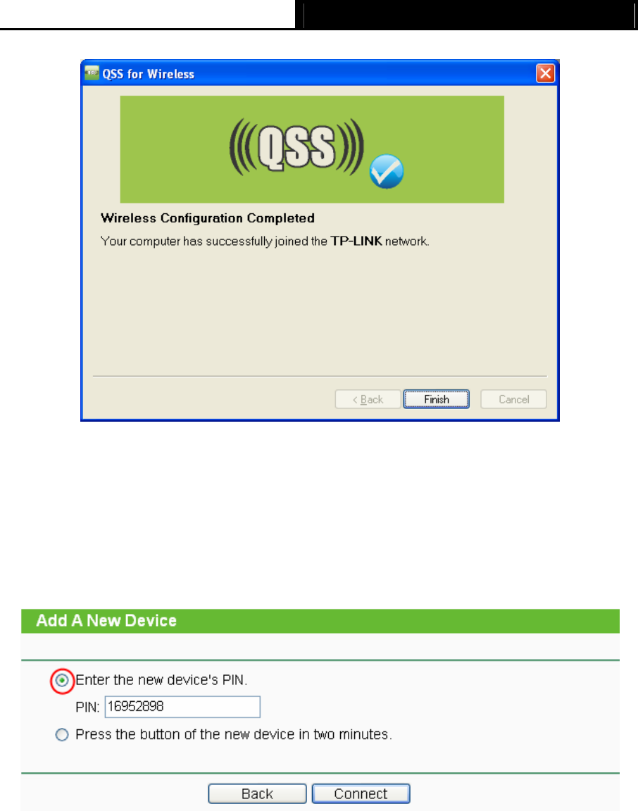 The PIN code of the adapter is always displayed on the QSS configuration screen as shown in the