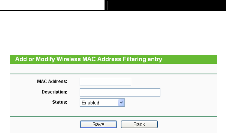 Wireless MAC Address Filtering entry" page will appear, shown in Figure 4-21