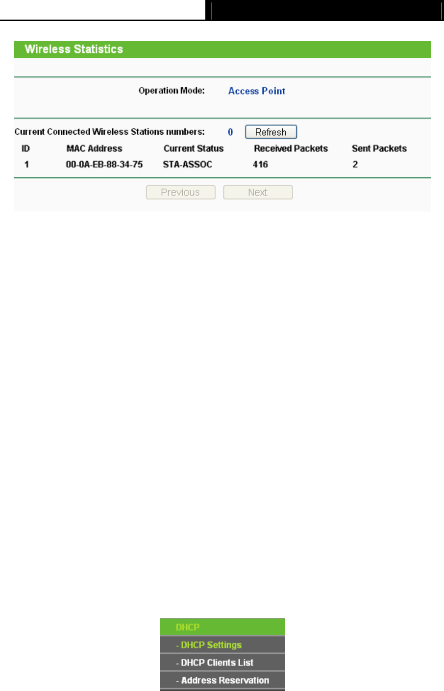 connected wireless stations, click the Refresh button.